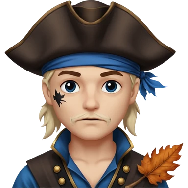 Un pirate qui fait peur uniquement bleu et noir avec une feuille d’automne noir sur la joue emoji