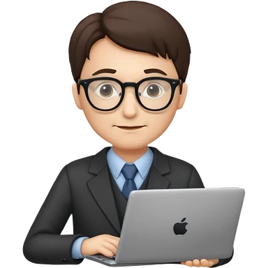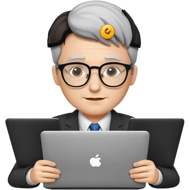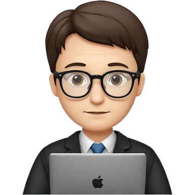 un profesor que este parado con sus lentes y su laptop emoji