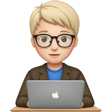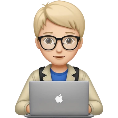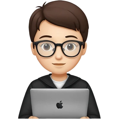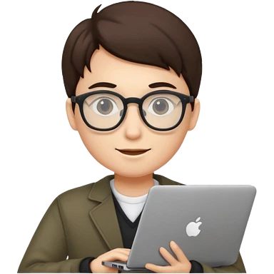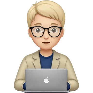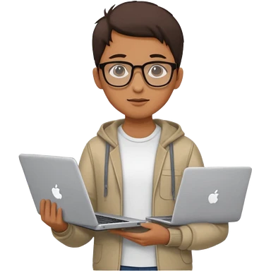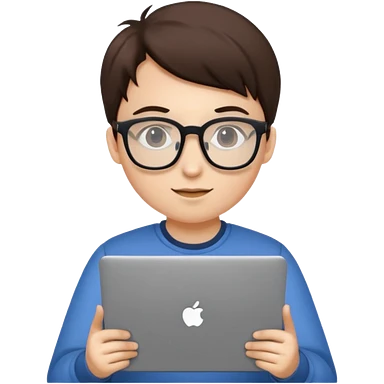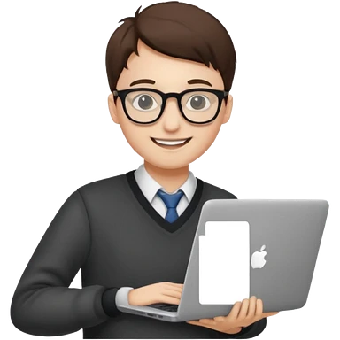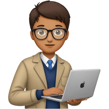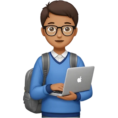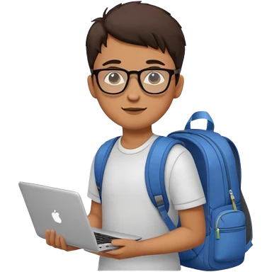 un estudiante que este parado con sus lentes y su laptop emoji