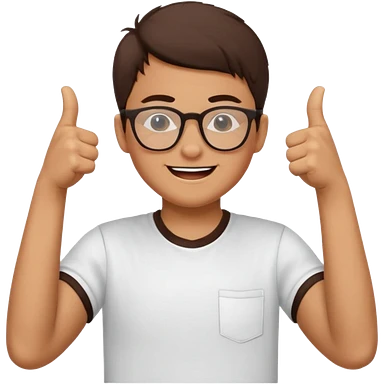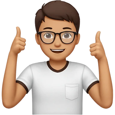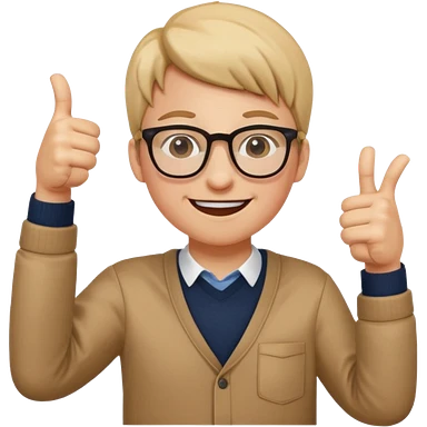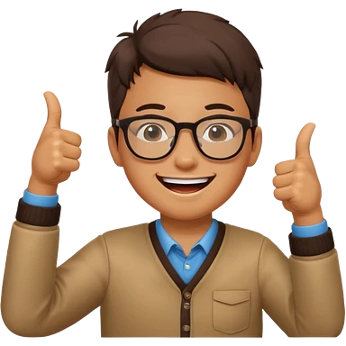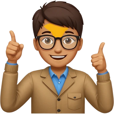 un estudiante que este parado con sus lentes guiñando el ojo y CON LAS MANOS HACIA ARRIBA DANDO LIKE emoji