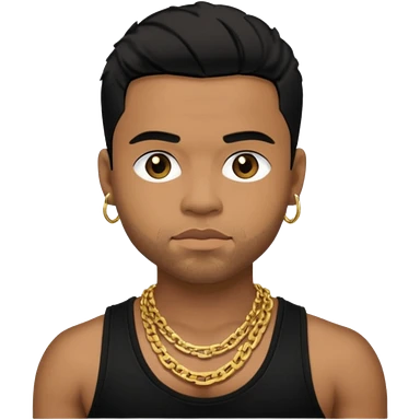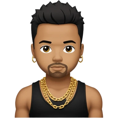 Raz B medium dark skin, black hair, black tank top with necklace emoji