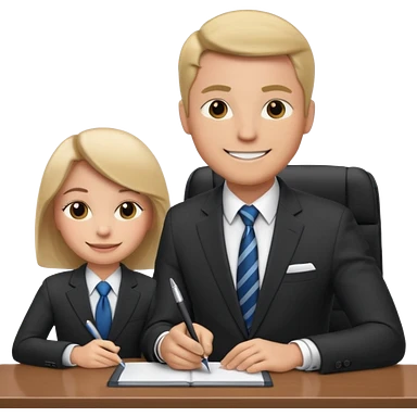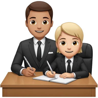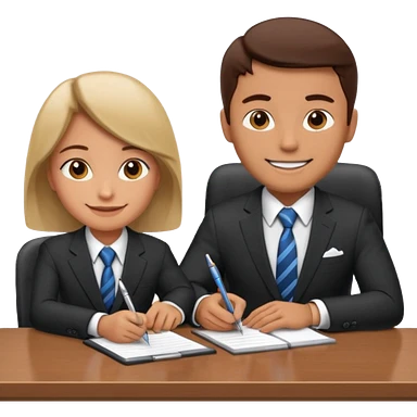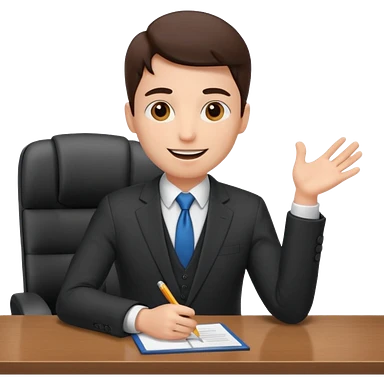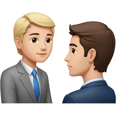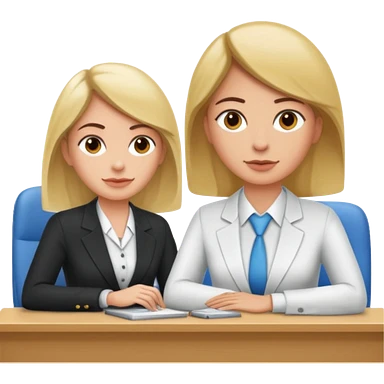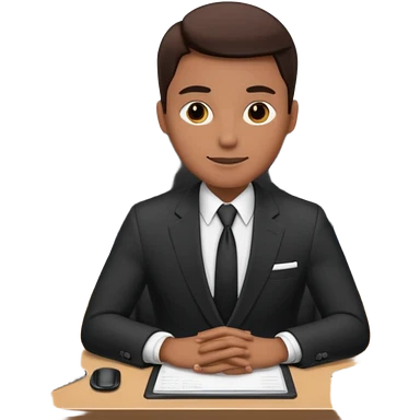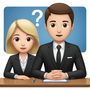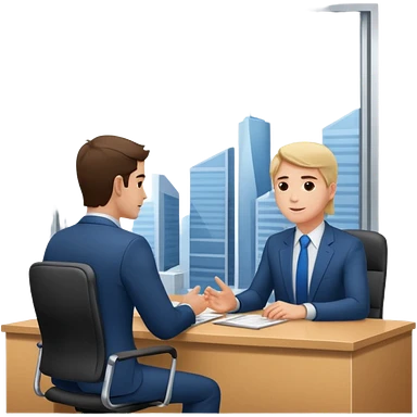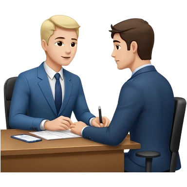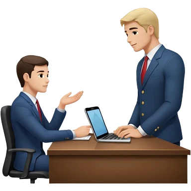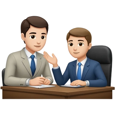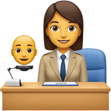 un recruteur qui pose une question à son bureau à un candidat emoji | AI Emoji Generator