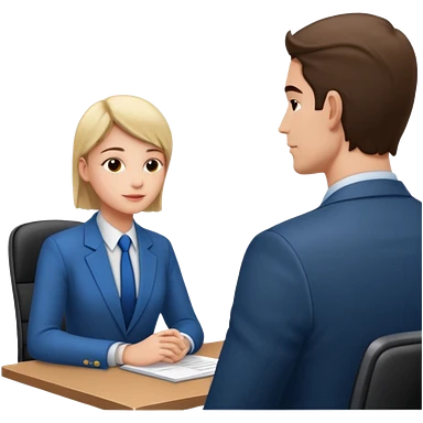 un recruteur à son bureau en face d'un candidat tourné de 3/4 emoji