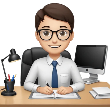un recruteur à son bureau (l'image est tourné de 3/4) emoji
