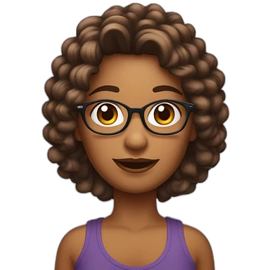 crie uma mulher de aproximadamente 30 anos, com cabelos ondulados, castanho escuro. Ela usa óculos e tem os olhos castanhos! emoji