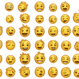 Un sol amarillo con una expresión relajada y un tercer ojo en la frente. Tiene brazos negros que se extienden como rayos, cada uno terminado en manos . Las manos están en diferentes poses: paz, apuntando, OK, saludando y otras señales gestuales variadas. emoji