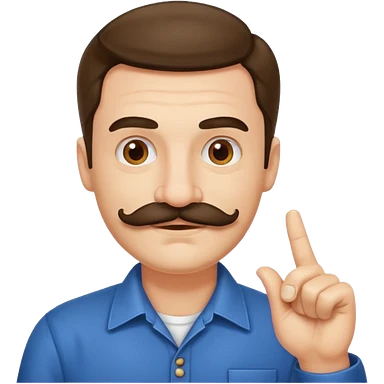 un uomo baffuto spocchioso con il dito alzato e con sguardo compiaciuto da chi la sa lunga emoji