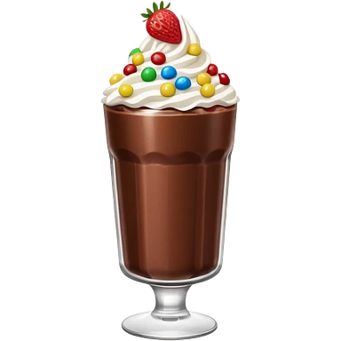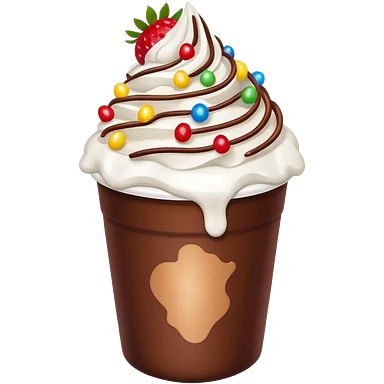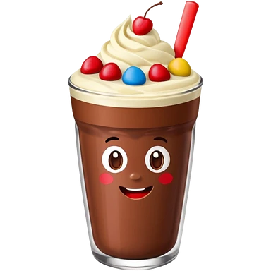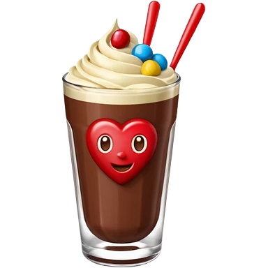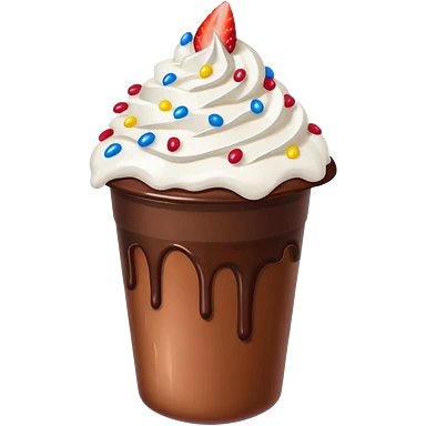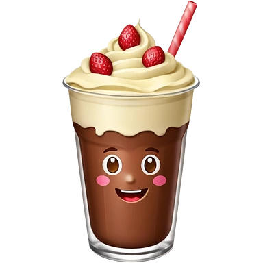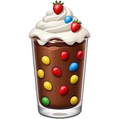 Un vaso cubierto de chocolate que arriba se vea crema batida mym y fresas encima emoji | AI Emoji Generator
