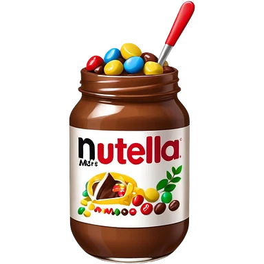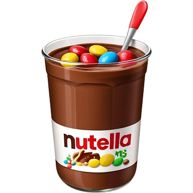 Un vaso cubierto de nutella arriba fresas y mym emoji
