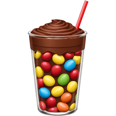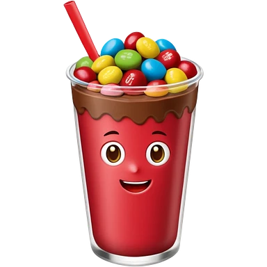 Un vaso cubierto de chocolate que arriba se vea crema batida encima M y M y fresas encima emoji