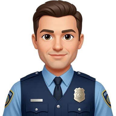 Un chico con piel blanca con barba con lentes y vestido de policia emoji