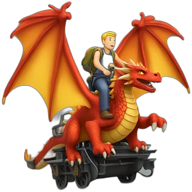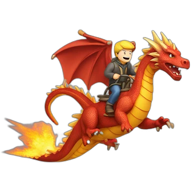 Homme sur un dragon en train de voler cracher du feu emoji