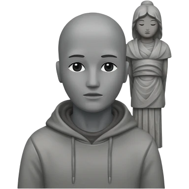 Una persona con la cabeza. De 🗿 pero sin rostro y con la ropa gris emoji