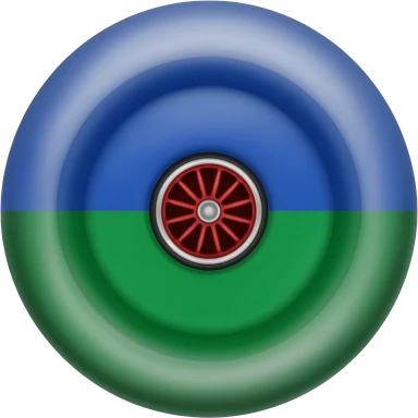 Crea una bandera donde el colores de la franja de arriba sea azul el de abajo verde y en medio una rueda de un carro en color rojo emoji