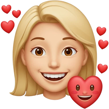 Una cara con una sonrisa tan amplia que la mitad inferior parece salirse del círculo del emoji. Se puede añadir un efecto de "espray" de pequeñas partículas de alegría (como mini-corazones o destellos) que salen de la boca. emoji | AI Emoji Generator