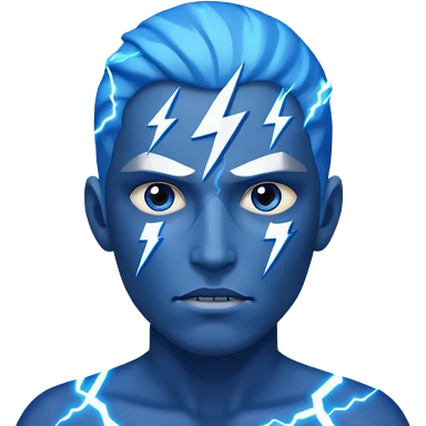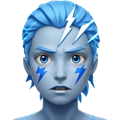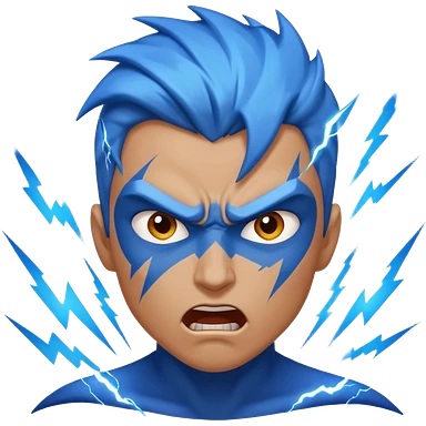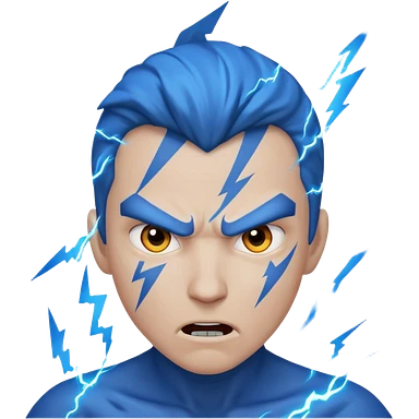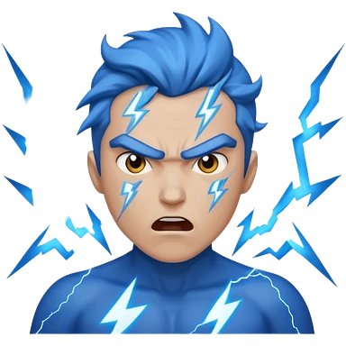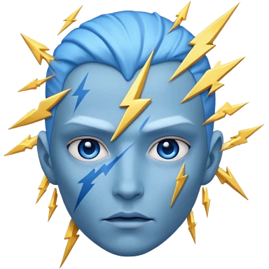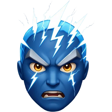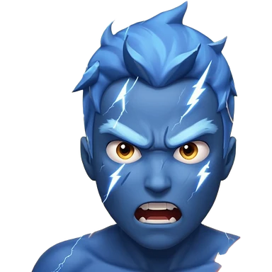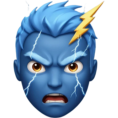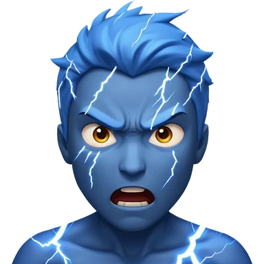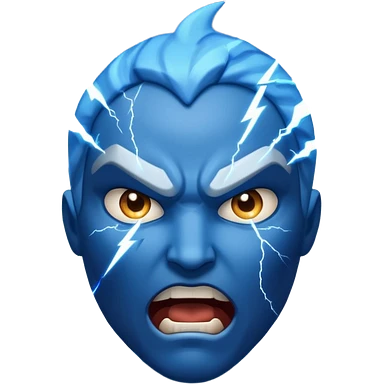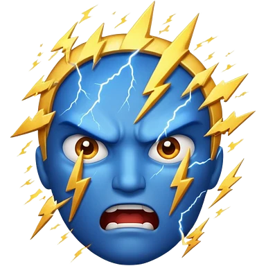 Rayos, centellas y estrellas en una cara color azul con expresiones de furia emoji
