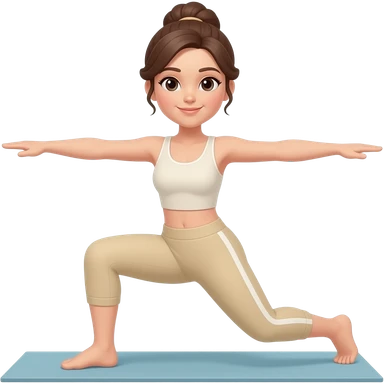 Mujer haciendo ejercicio con ropa beige emoji