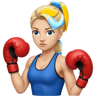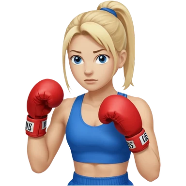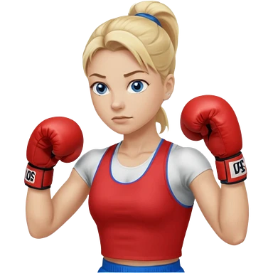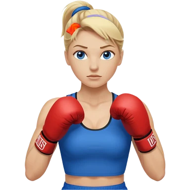 Rubia de ojos azules boxeo con pelo recogido y mostrando cuerpo emoji