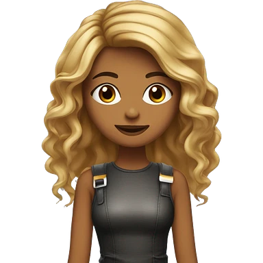 una chica blanca de cabello oscuro mediano ondulado y fleco en la parte frontal con nariz pequeña respingada, ojos cafés oscuros, lentes de cateye negros y labios bonitos emoji | AI Emoji Generator