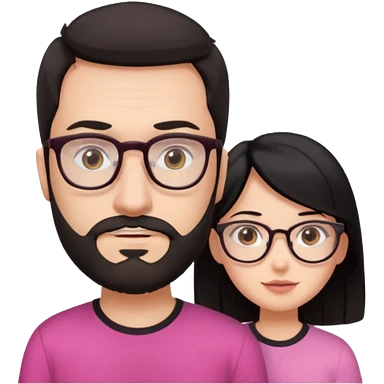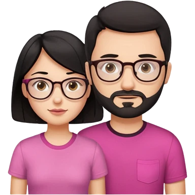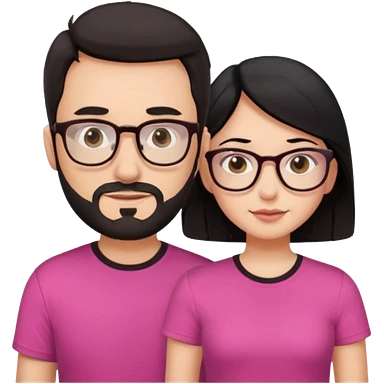 chico con gafas y barba corta moreno al lado una chica pelo negro piel blanca y camiseta rosa ojos marrones emoji