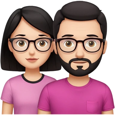 chico con gafas y barba corta moreno camiseta negra al lado una chica pelo negro largo piel blanca y camiseta rosa ojos marrones emoji