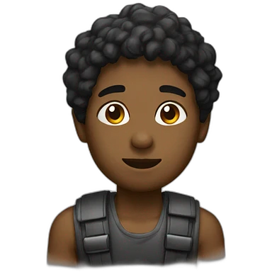 Genera un moreno de cabello ondulado con un orte urbano, de ojos marrones claro, musculoso, vestido con un uniforme de karate con una cinta negra amarrada en la frente emoji