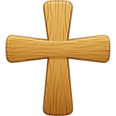 Es una cruz latina azul, simétrica y estilizada, con brazos curvos que se ensanchan y terminan en puntas decorativas lobuladas, rodeada por un doble contorno (blanco interno y negro externo) con la parte de abajo de la cruz más para emoji