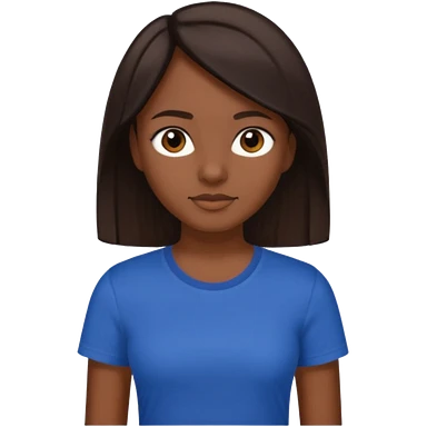 Una donna con una maglietta a mezze maniche blu scuro,capelli lisci e lunghi e mori occhi marroni emoji | AI Emoji Generator