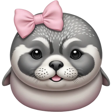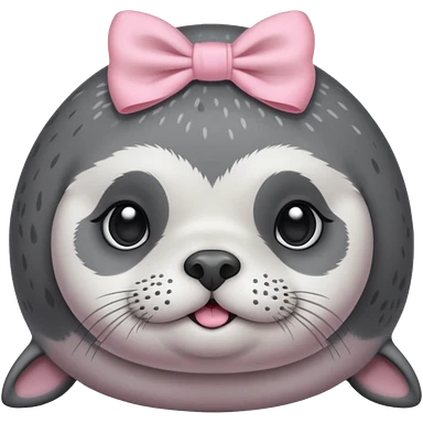 Crea una foca anillada gordita con aspecto tierno, lleva un moño rosado con tonos pasteles (como referencia el lazo de hello kitty rosado) emoji