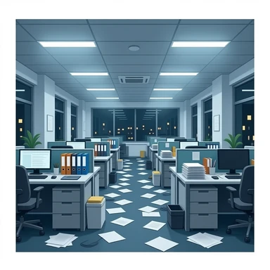 una imagen que respresente la falta de estrucura en un negocion con el mismo estilo de las imagenes anteriores con personas en ella emoji | AI Emoji Generator