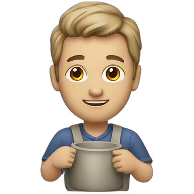 Una mujer ceramista con pelo color chocolate de largo medio, piel blanca, gran sonrisa sosteniendo un cuenco en una mano y una torneta en la otra. Tiene un hermoso delantal.en emoji | AI Emoji Generator