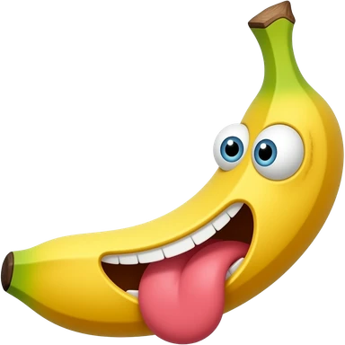 Un plátano con ojos y nariz y un gigante én la boca emoji