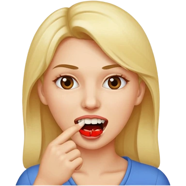 Una mujer mordiendose el dedo, sin la lengua para afuera y que el dedo este más omenos adentrod de la boca EL DEDO ADENTRO DE LA BOCA emoji | AI Emoji Generator