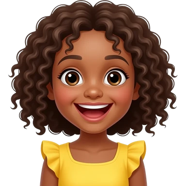 niña cabello rizado medio ondulado marron oscuro ojos negros emoji