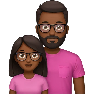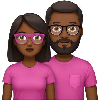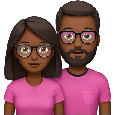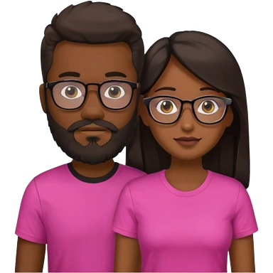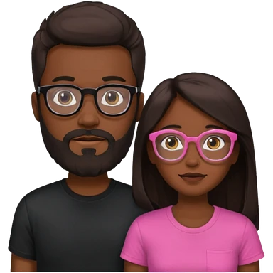 Una pareja joven de 30 años. Ella pelo largo y rizoso, de color castaño y con el flequillo liso. Él, sin barba, un poco de tupe y piel clara. Ambos en camiseta emoji | AI Emoji Generator