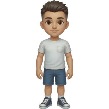 Hazme un chico con pelo rapado, en cresta y negro, ojos marrones. Y que este un poco musculoso. Que tenga camiseta. QUE SE VEA EL CUERPO ENTERO Y QUE TENGA ZAPATOS emoji