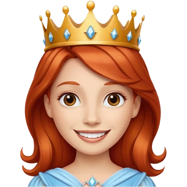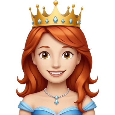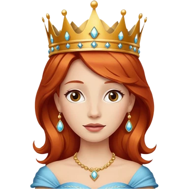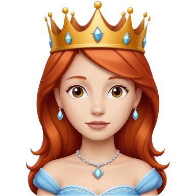 una princesa de tes blanca cabello largo color cobrizo con ondulaciones en las puntas del cabello ojos grandes color castaño con corona y vestido amarillo emoji