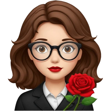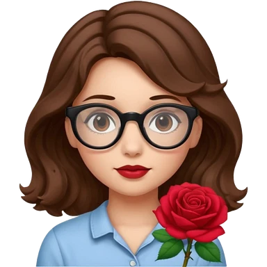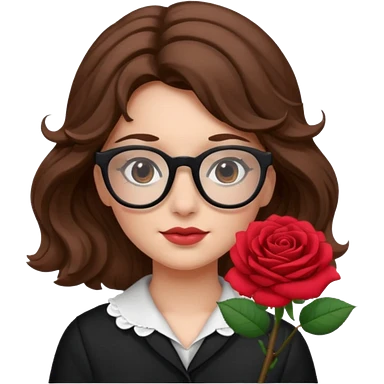 Una ragazza con capelli castani mossi e lunghi e indossi occhiali neri e con una piccola rosa nella testa emoji | AI Emoji Generator