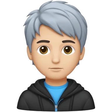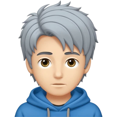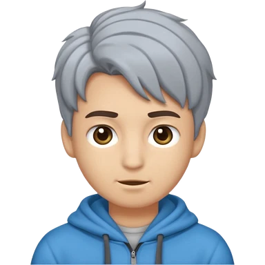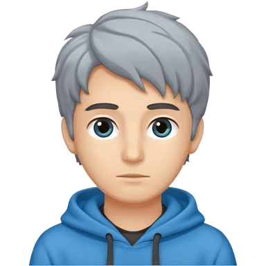 Crea un emoji a mezzo busto come ti ho già chiesto però di un ragazzo sulla 20ina ma che sembri più giovane, vestito con una felpa grigia. Occhi azzurri, capelli neri con il ciuffo davanti un po bagnato. emoji