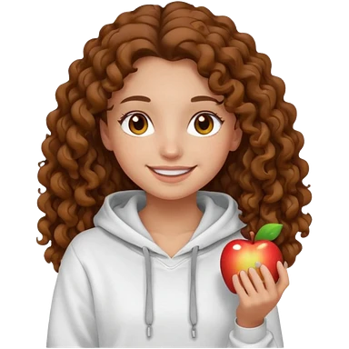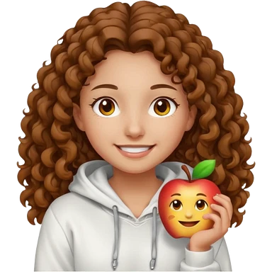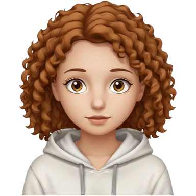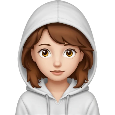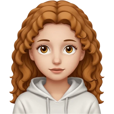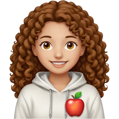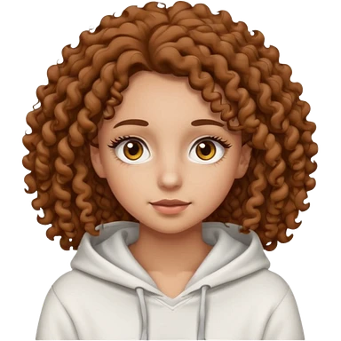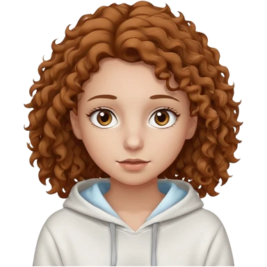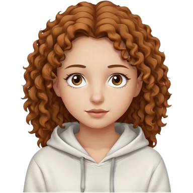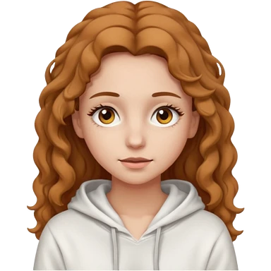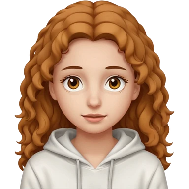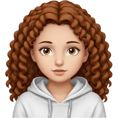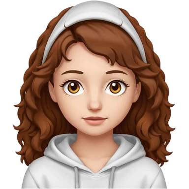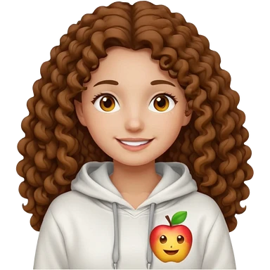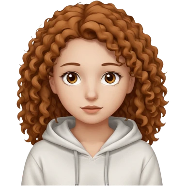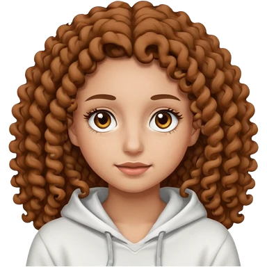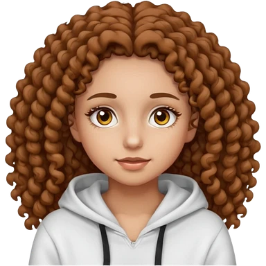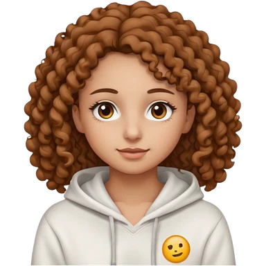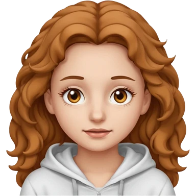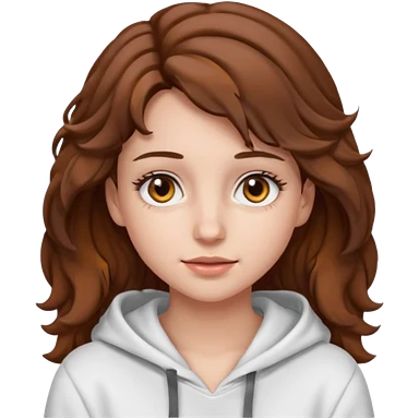 Una ragazza con una felpa semplice bianca,ha gli occhi marroni,i capelli marroni chiaro , c’è gli ha lunghi e ricci ma non troppo emoji | AI Emoji Generator