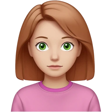 Una donna con una felpa semplice rosa,i capelli sono lunghi fino alle spalle marroni chiaro,gli occhi sono verdi emoji