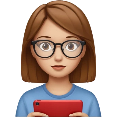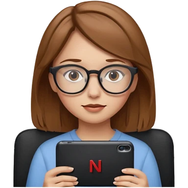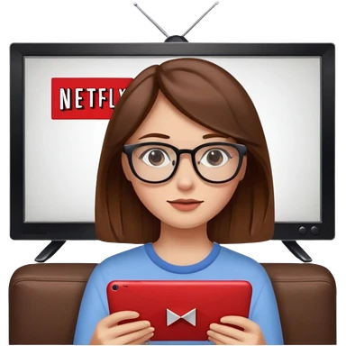 una ragazza con capelli castano chiaro con occhiali guarda netflix emoji