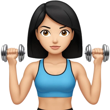 mujer fit con pelo negro y sosteniendo 2 mancuernas emoji