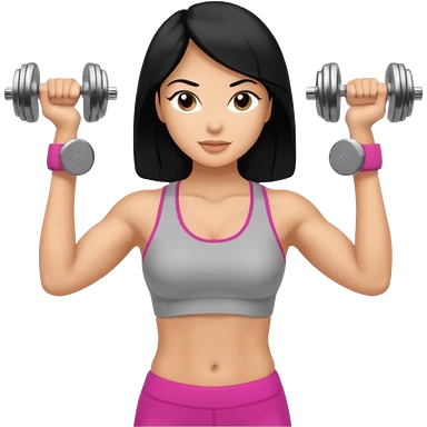Mujer fitness usando mancuernas con lentes de marco delgado y cabello largo negro emoji
