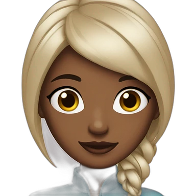 Unas chica con el pelo corto rizado, un pies es color caramelo claro, su boda es grande, sus ojo son marrones oscuros emoji