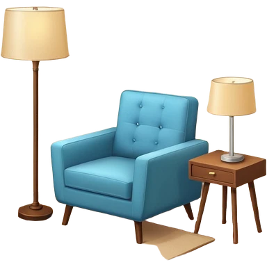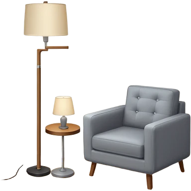 isometric corner of hotel room with floor lamp and modern armchair emoji