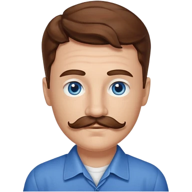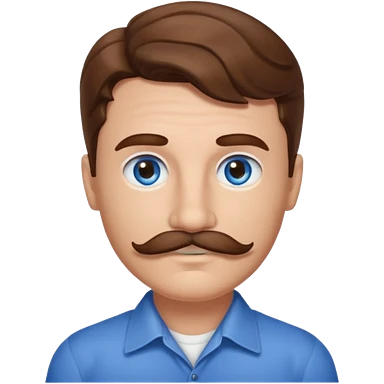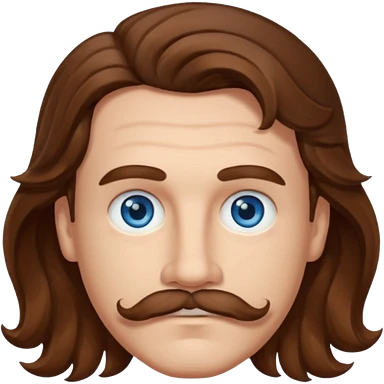Benson Boone (b.2002) with blue eyes, brown wavy hair and mustache emoji
