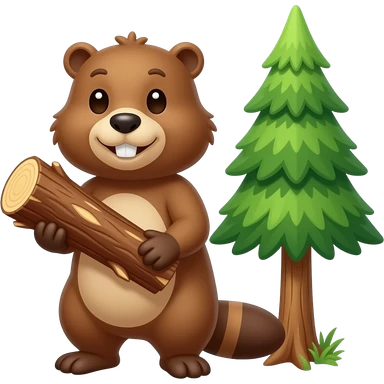cartoonish wood log with cheerful expression and big eyes, holding a small mallet, white background, bright colors, apple emoji style emoji
