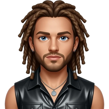 Jacob Underwood from O-Town with blue eyes, long brown dreads, black metallic sleeveless shirt, necklace and earrings emoji