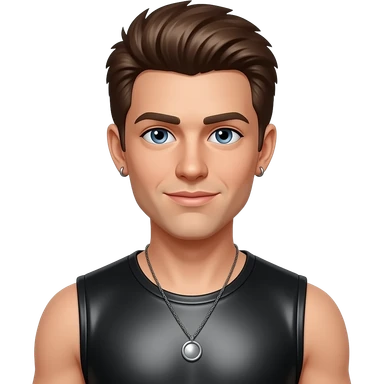 Jacob Underwood from O-Town with blue eyes, brown hair, black metallic sleeveless shirt, necklace and earrings emoji